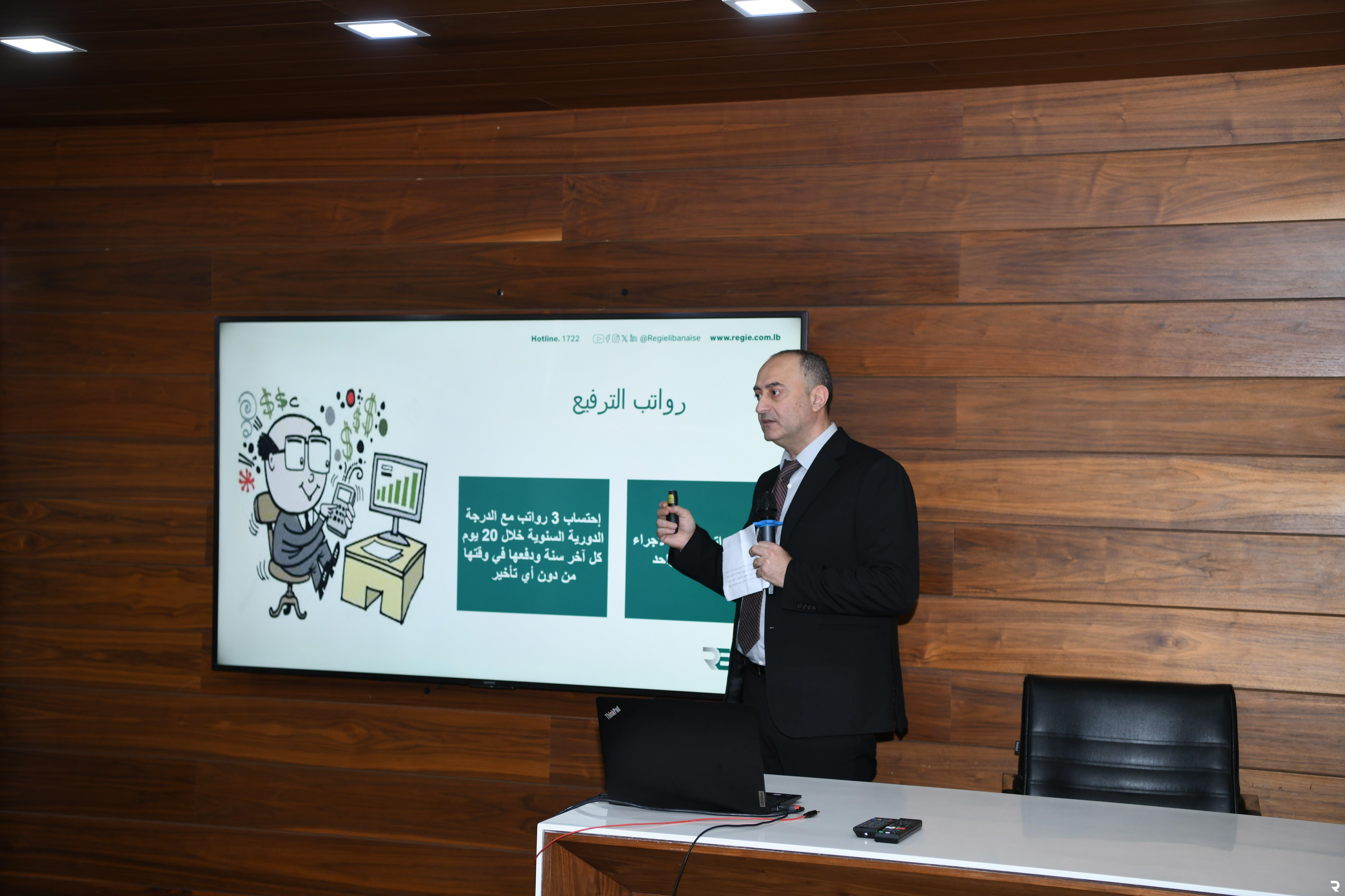 The Regie’s chairman and general manager, Eng. Nassif Seklaoui, honored the employees of the Human Resources Department, with special recognition given to Head of Payment Office Tony Baradhi, Head of Attendance Office Mirna Mneimneh, Head of Human Resources Office Manale Hobeika, Head of Social Security Office Nada Seklaoui, Head of Training and Development Office Hanin Daher and Head of Health Insurance Office Rima Abi Oula.